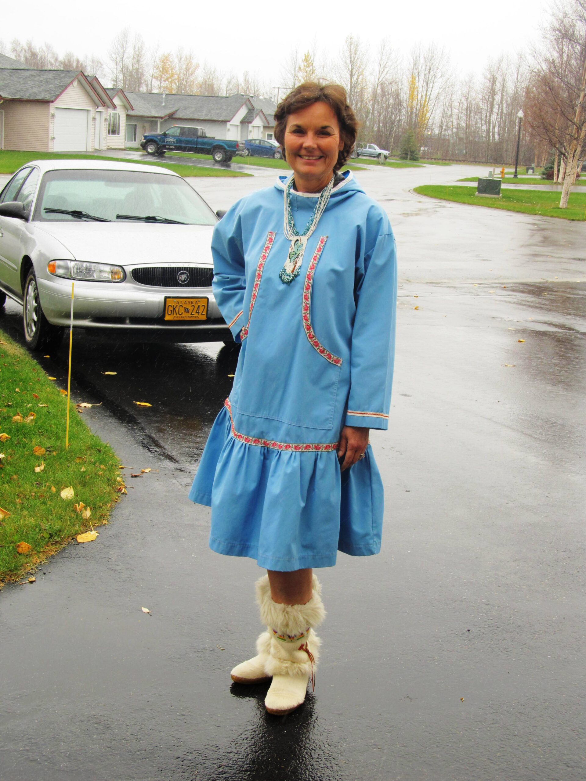 The event planner had one thing in her wardrobe that fit me. It was a kuspuk—an Alaskan outfit with boots. I actually got ready to speak in this outfit when I heard the Delta man coming up the sidewalk with my luggage. Close call. We now have AirTags in each of our suitcases so we always know where our luggage is. And I pack an extra outfit and essentials in my carry on bag—especially my vitamins and any medications.